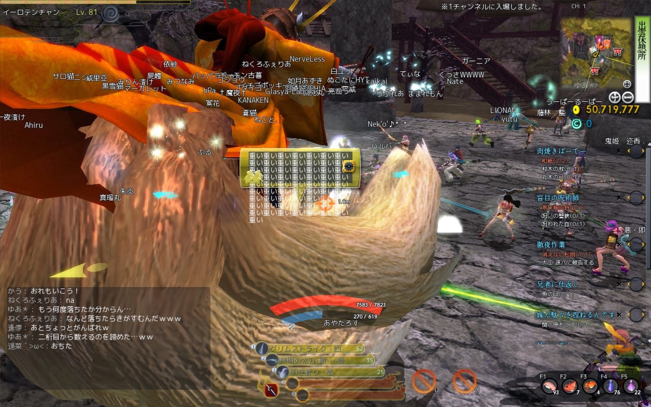 ちょくちょく落ちてしまってはまた鬼斬を起動の繰り返し・・・